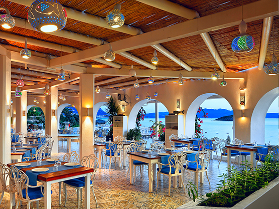 Our hotel has an exceptional à la carte restaurant overlooking the breathtaking Aegean Sea. We are proud to offer a fusion of Aegean, Mediterranean and Italian cuisine that will take your taste buds on a journey. Our dishes are made using only the freshest and highest quality ingredients, ensuring that every bite is a delight. With the sound of the waves and spectacular sea views, our restaurant offers a truly unforgettable dining experience. Whether you are looking for a romantic evening for two or a family dinner, our restaurant is the perfect place.